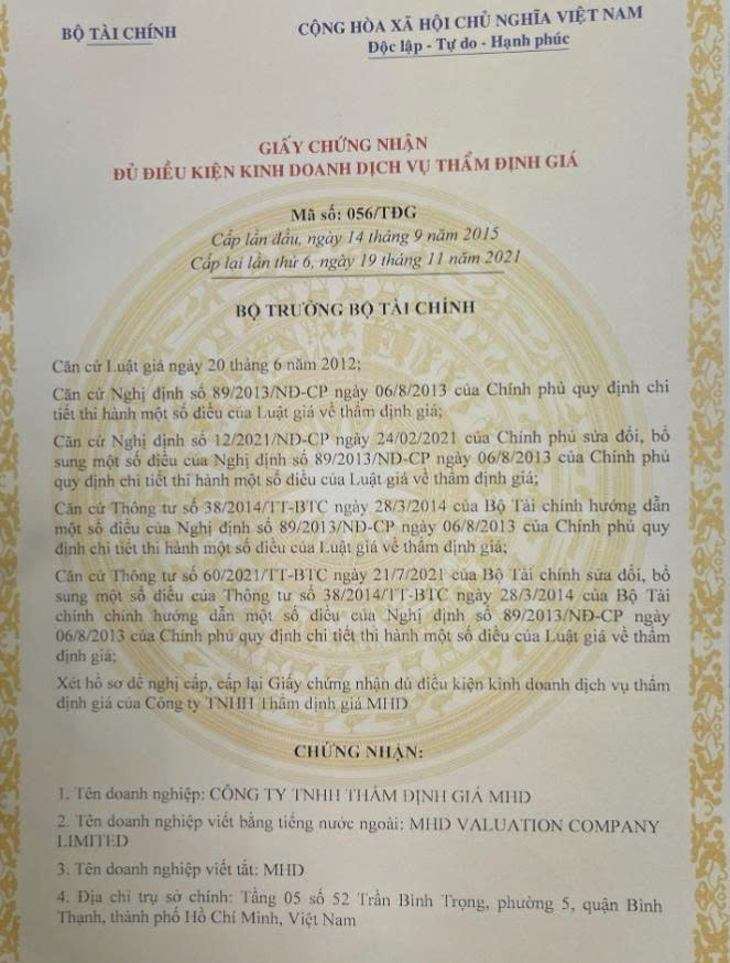 Công ty Thẩm định giá MHD – Định giá chính xác, minh bạch, vì giá trị thật của bạn.